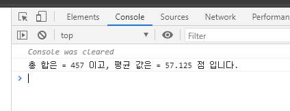 console.log(`총 합은 = ${result} 이고, 평균 값은 = ${result / students.length} 점 입니다.`);
